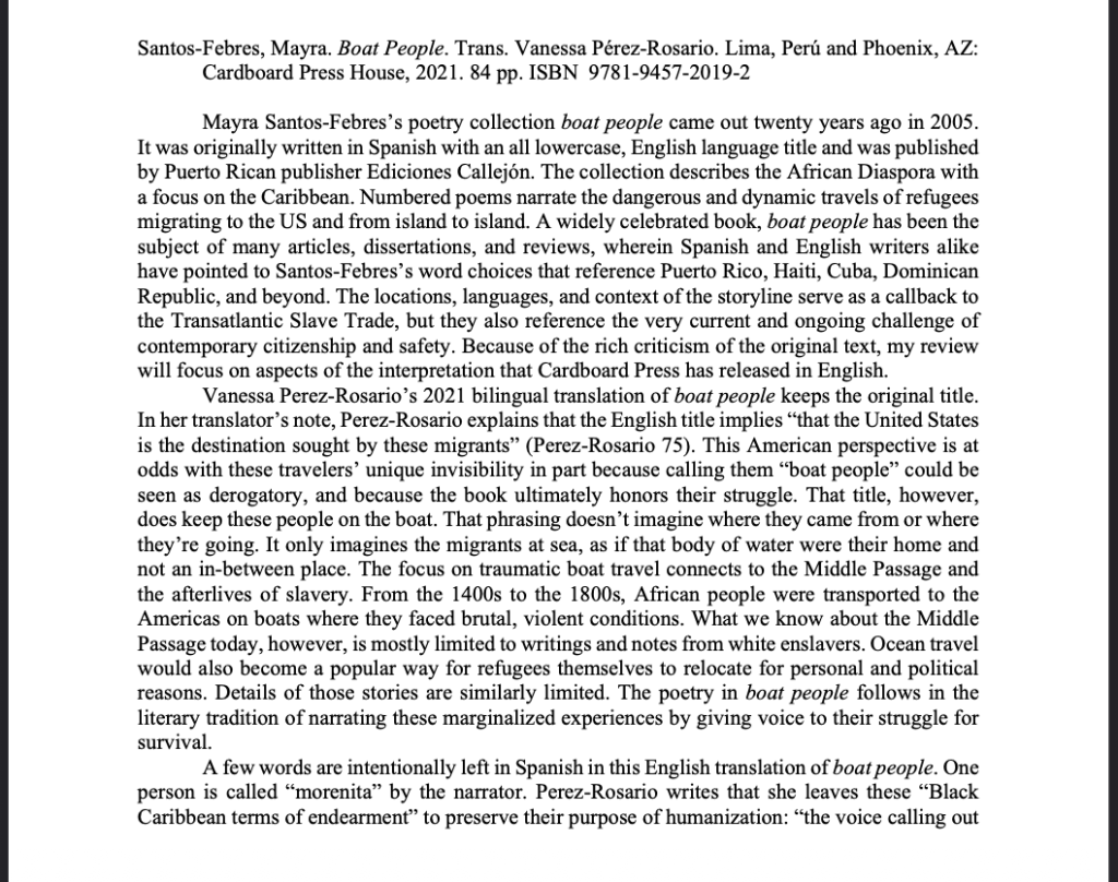 February 26, 2026February 26, 2026 Rachel Wagner New essay: “Caribbean Migration, the Middle Passage, and Oceanic Travel: A Review of Vanessa Perez-Rosario’s English Translation of Mayra Santos-Febres’s Boat People” Share this: Share on X (Opens in new window) X Share on Facebook (Opens in new window) Facebook Like Loading... Related